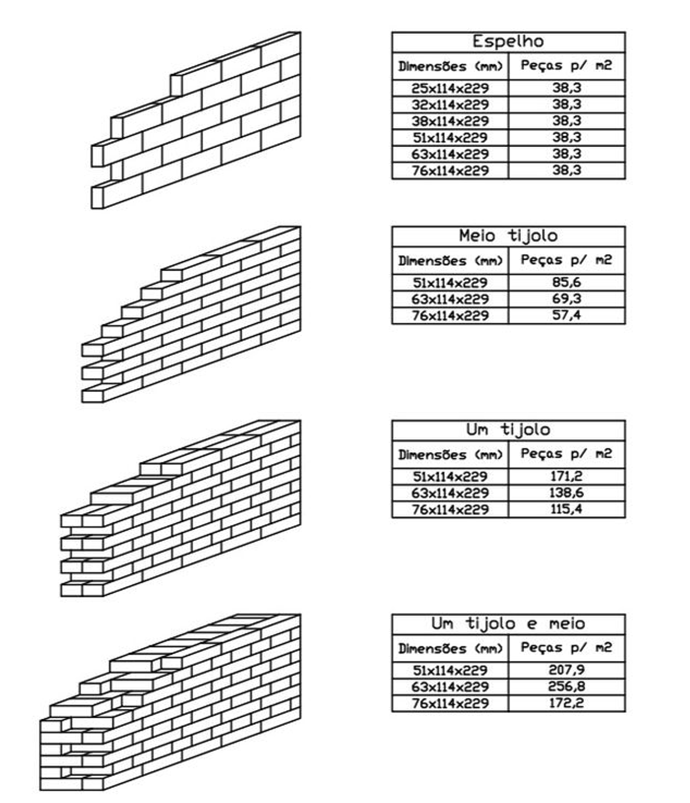 (Quantidade de tijolo p/m